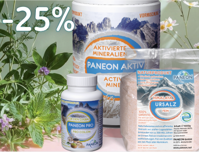 PANEON Aktiv 500g + PRO Kapseln 60 Stück + Ursalz fein 1 kg Statt zusammen € 88,42 nur € 66,32 = Ersparnis 25% *Entgiftung & Mineralisierung in einem Natursilikat, Dolomit, Flohsamenschalen & Aktivkohle Mineralien & Spurenelemente für das Blut*